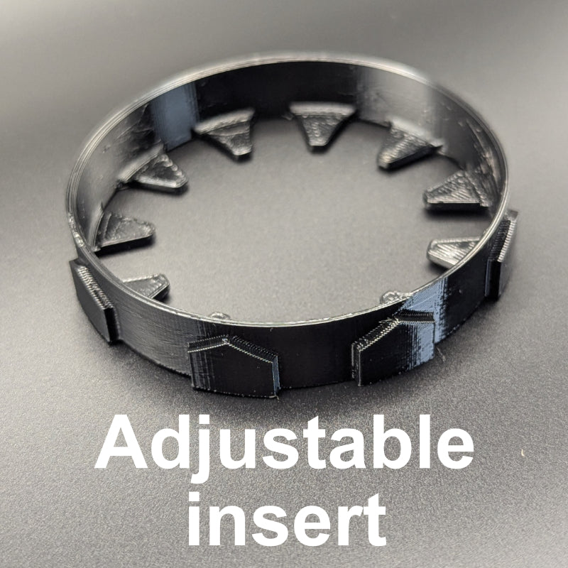 Depth: 3-3/4" (96mm)Adjustable Insert: Expands and contracts to grip cups, bottles, and koozies securely